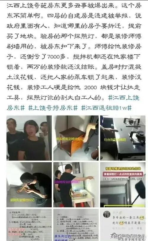 哎呀,最近在江西的房东圈子里可是炸开了锅!听说有一位房东竟然爆料出了自己租客的惊天秘密,这消息就像一颗重磅炸弹,瞬间在网络上引发了热议。今天,就让我带你一起揭开这神秘的面纱,看看这位房东究竟发现了什么吧!